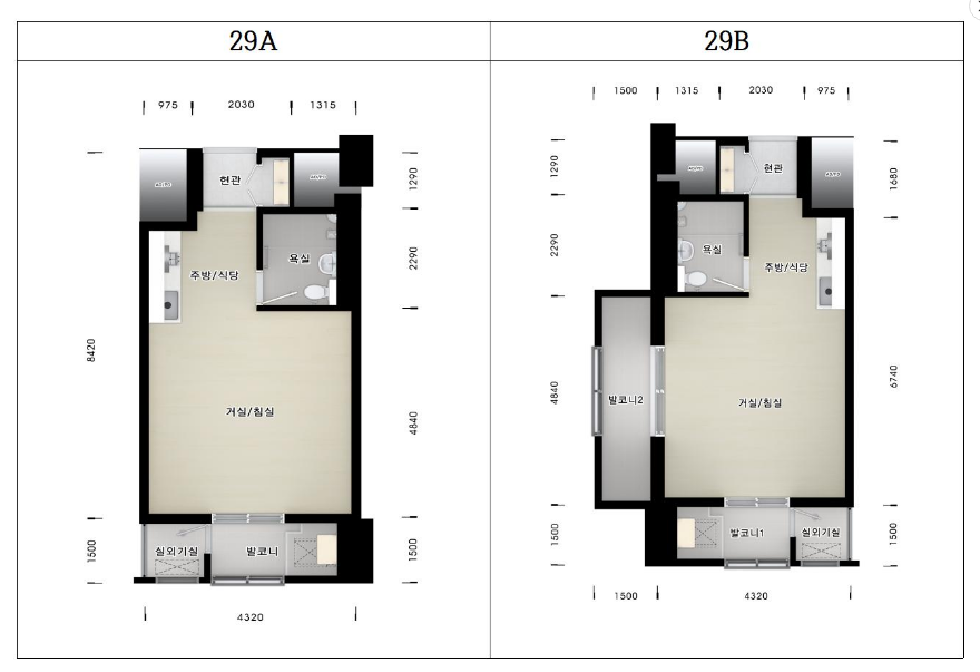 전용면적: 29.4㎡ / 37.4㎡ / 46.46㎡